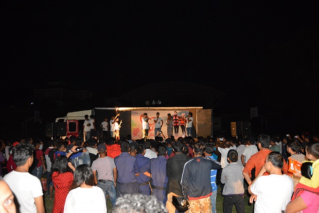 कार्यक्रममा सागरको गीतमा दमौलीका दर्शक झुम्न थालेसी फिल्मटिम हर्षित भएका थिए । कार्यक्रममा ‘मोटरसाइकलमा’ बोलको गीत घन्किएपछी प्रदिपले अश्लेषालाई बुलेट बाईकमा राखी स्टेजमा प्रवेश गरेका थिए । जब स्टेजमा प्रदीप र अश्लेषा पुगे तव स्टेजछेउ आउने दर्शकको ठेलमठेल भएको थियो ।