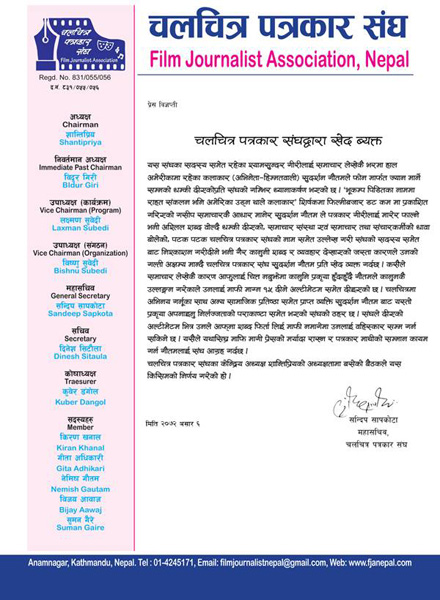 A press release issued by Nepal Film Journalist, Nepal.