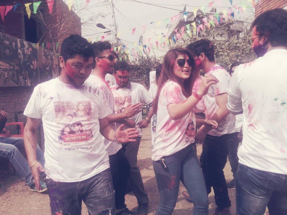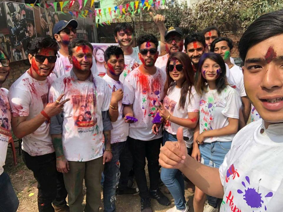 Festival of colour Holi is been celebrated by all the Nepali Artist. As we all know that Nepal celebrates Holi a twice. Today all the people from Tarai region celebrates the Holi.