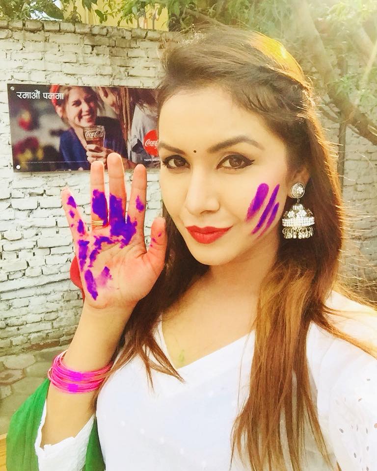 Furthermore, celebrities celebrates holy with different color with full of happiness in different places. We have collected some glimpses of Nepali Celebrities celebrating Holi – festival of colour.